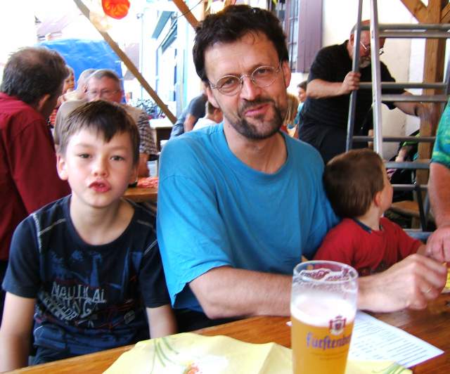 ![]() | ![]() | ![]() | am ersten WE ist es sehr regnerisch. Wir sind zuerst im Basler Zoo und besuchen dann Uli & Judith in Spiez. Dort fahren über'n See zur Beatushöhle in der wir lange die Kalkgebilde bestaunen. Dann kommen Karl-Heinz, Maria & 2 der Cousins zur Oma nach Teningen. Alle zusammen, besuchen wir das Gassenfest. |