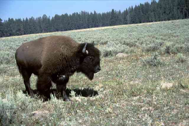 Büffel gibt. In Wyoming gibt es auch noch Cowboys und auch ich bekomme einen richtigen Cowboy-Hut wegen der Sonne und einen Colt zum Krach machen. Papa & Mama gehen wieder jeden Tag Klettern und ich muß mit. Aber ich finde zum Beispiel am Devils Tower und in Wild Iris auch einige Kletterstellen für mich.