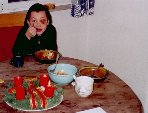 ![]() | Die Schule macht im Allgemeinen Spass auch wenn es wie im Advent zu einem "Veilchen" kommt (Zusammenstoß mit dem liebsten Klassenkameraden) |