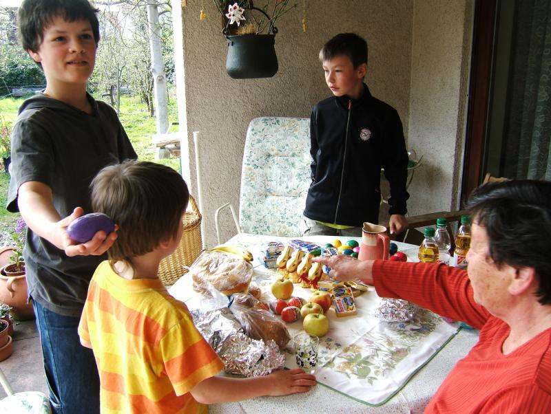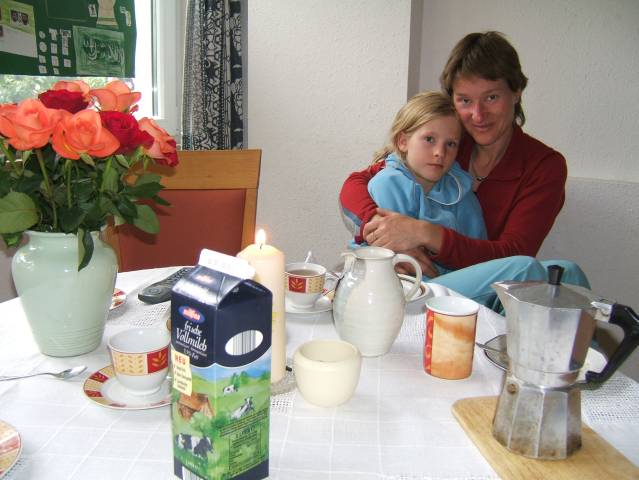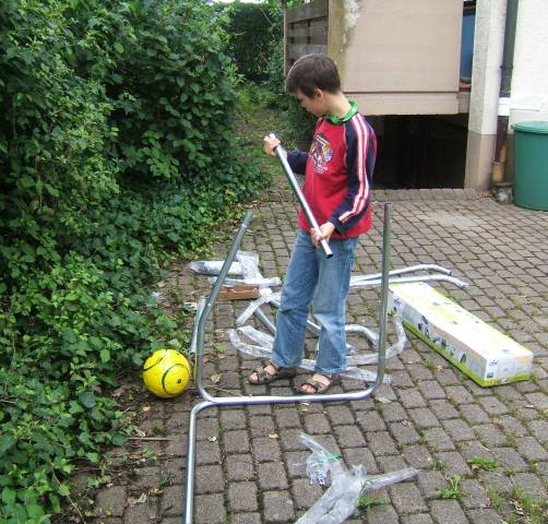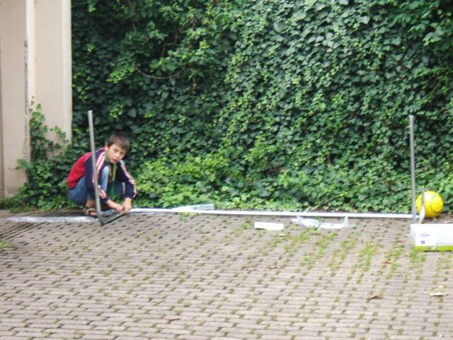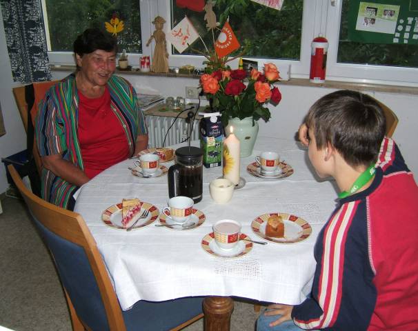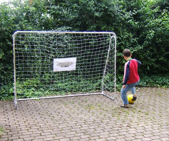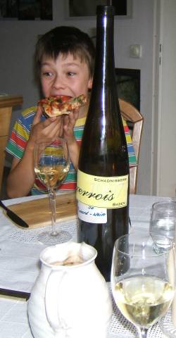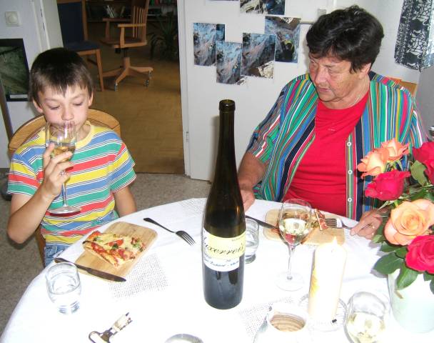 1997 liegt nun 10 Jahre zurück, unser Sohn darf an diesem Tag den Wein aus seinem Geburtsjahr, noch von seinem Opa Walter gekeltert, probieren. Aber die Pizza schmeckt ihm dann doch besser. Zuvor waren das selbst aufgebaute Fußballtor und der Kuchen mit den Gästen das Wichtigste. | ![]() | ![]() |